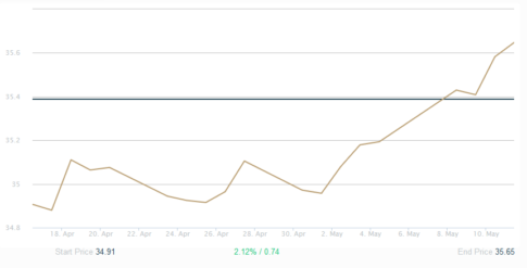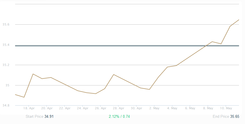 V zadnjih 30 dneh je evrska cena zlata zrasla s 34,91 €/g na 35,65 €/g. Kljub rasti vrednosti dolarja se je cena zlata v dolarjih obdržala na približno isti ravni, predvsem zaradi geopolitičnih negotovosti v svetu. Obrestne mere so na svetovni ravni začele nekoliko rasti, vendar so, zgodovinsko gledano, še zmeraj izjemno nizke. Za primer vzemimo ameriške zakladne menice, ki so z nič (oktober 2015) zrasle na 1,84 odstotka (maj 2018). Če upoštevamo inflacijo (raste tako v ZDA kot tudi drugod po svetu), je realna obrestna mera negativna. Trenutno se torej nahajamo v razmerah rasti tako obrestnih mer kot tudi inflacije. Negativne realne obrestne mere so zelo spodbudne za prihodnjo rast cene zlata.