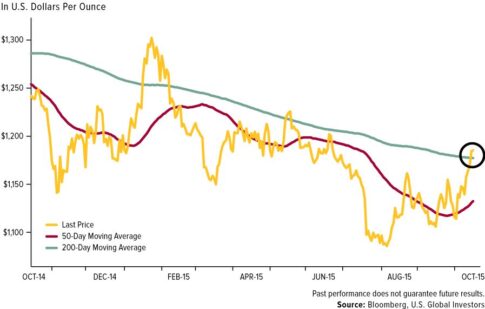 Od sedemdesetih let oziroma od začetka prostega oblikovanja cene zlata na trgu, se vrednost dolarja in zlata pogosto gibata v nasprotni smeri. V letih 1980, 1995 in 2011 je recimo začela vrednost dolarja rasti in cena zlata padati, kar je trajalo približno pet let. Analitiki so iz teh preteklih obdobij oblikovali vzorec gibanja cene, po katerem bi lahko bilo naslednje leto za ceno zlata prelomno. Cena zlata je pravkar presegla drseče povprečje zadnjih 200 dni, kar je dober znak za potencialni nov bikovski trend.