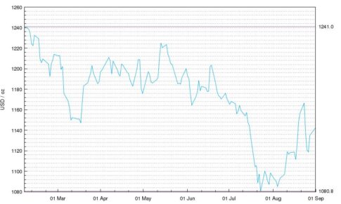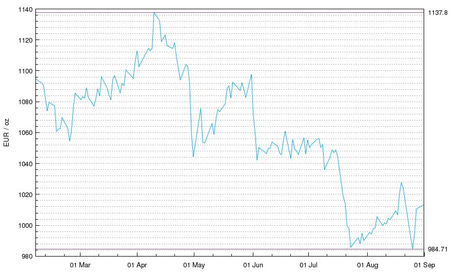 V juliju je večja prodaja zlata na Shanghai Gold Exchange povzročila padec cene na skoraj 1.080 dolarjev za trojsko unčo. Zlato v vrednosti 1,3 milijarde ameriških dolarjev je tako menjalo lastnika v dveh minutah. 85 odstotkov teh transakcij je bilo papirnate oblike in dejansko ni šlo za fizično zlato. Od takrat se evrska cena postopno pomika navzgor, dolarska pa je malo nad 1140 dolarji za trojsko unčo. Nazadnje smo to ceno zabeležili novembra lani. Različne krize v svetu, politične in ekonomske, se še niso odrazile v nominalni ceni zlata, kot bi lahko pričakovali, vendar kljub temu zlato ohranja realno vrednost, kar je zelo ugodno predvsem za dolgoročne investitorje.