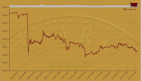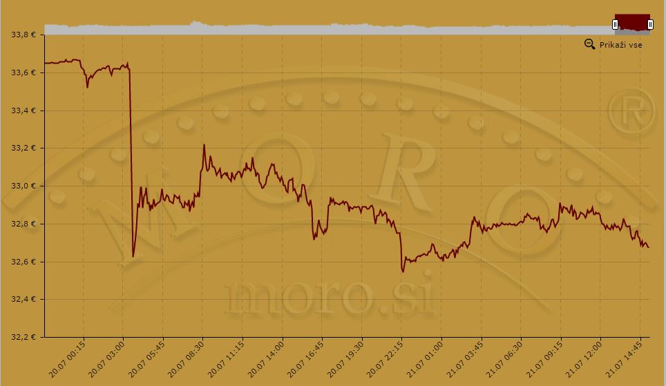 V evrskem smislu je cena v noči na ponedeljek (20. julija) v 20 minutah padla za točno 1 € za gram čistega zlata.
