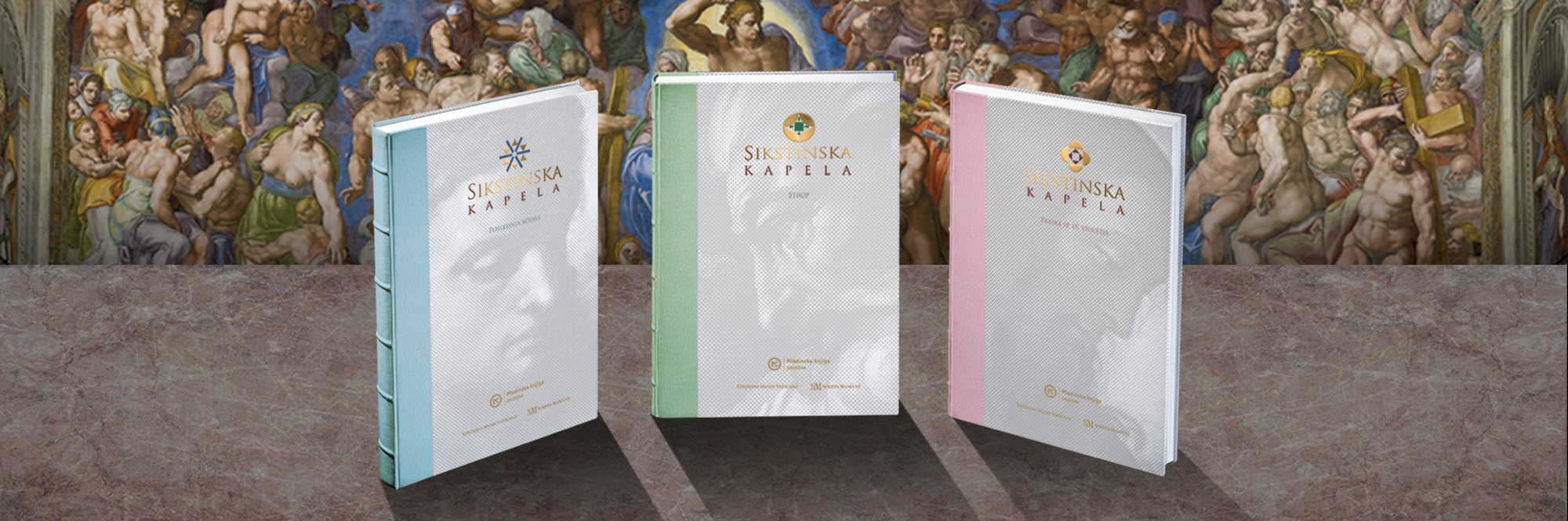Knjižna izdaja Sikstinska kapela je najbolj popoln prikaz slikarskih mojstrovin v treh veličastnih knjigah: Poslednja sodba, Strop in Freske iz 15. stoletja. Vsaka od treh oštevilčenih unikatnih knjig vsebuje 254 barvnih strani. Barve so tiskane z najkakovostnejšim šest barvnim sistemom tiskanja. Na slovenskem trgu je bilo na voljo 50 izvodov. V prodaji so še izdaje s serijskimi številkami 161, 166 in 169.