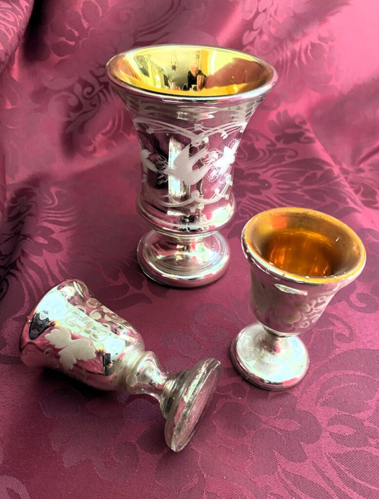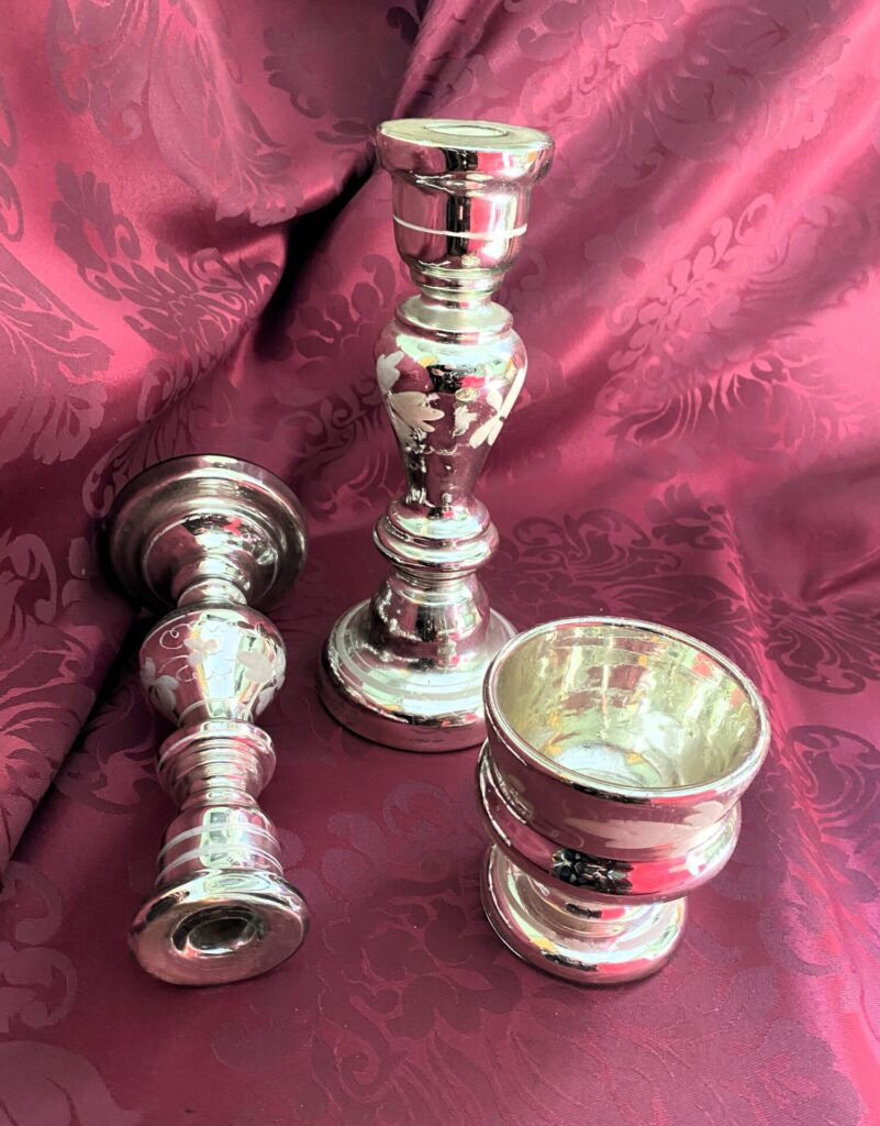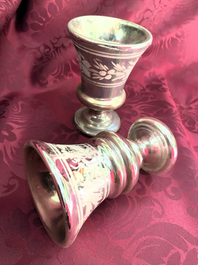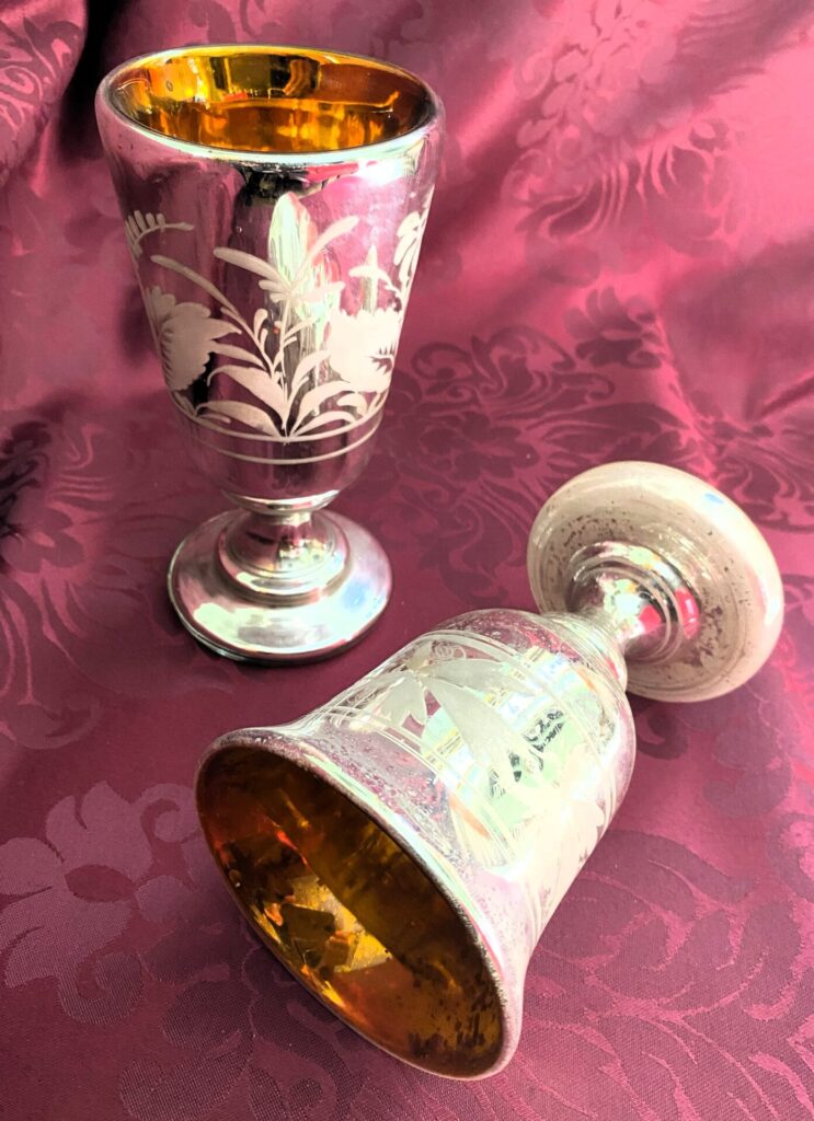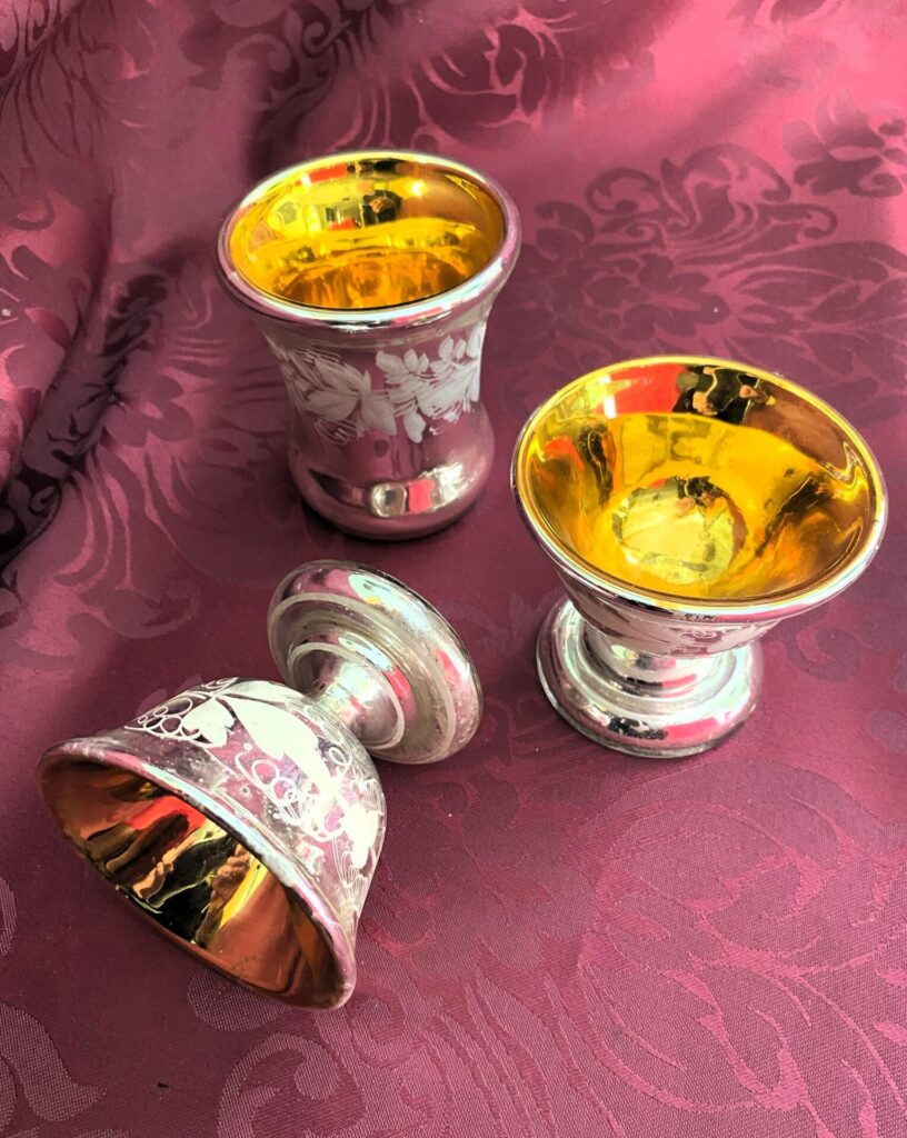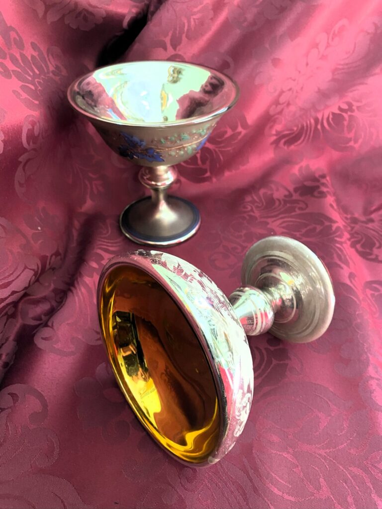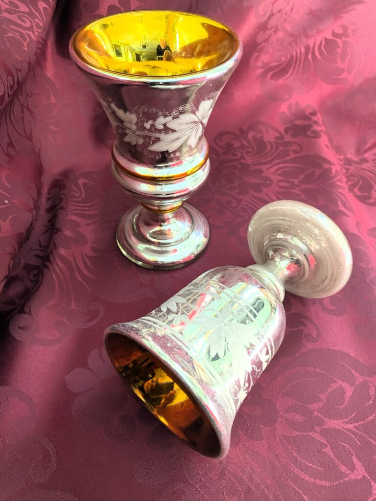 Kombinacija srebrnega zrcalnega leska in toplega zlatenja je ustvarilo izjemno baročno razkošje, ki je bilo priljubljeno predvsem na kelihih, kozarcih, božičnih okraskih, svečnikih in nabožnih kipcih.