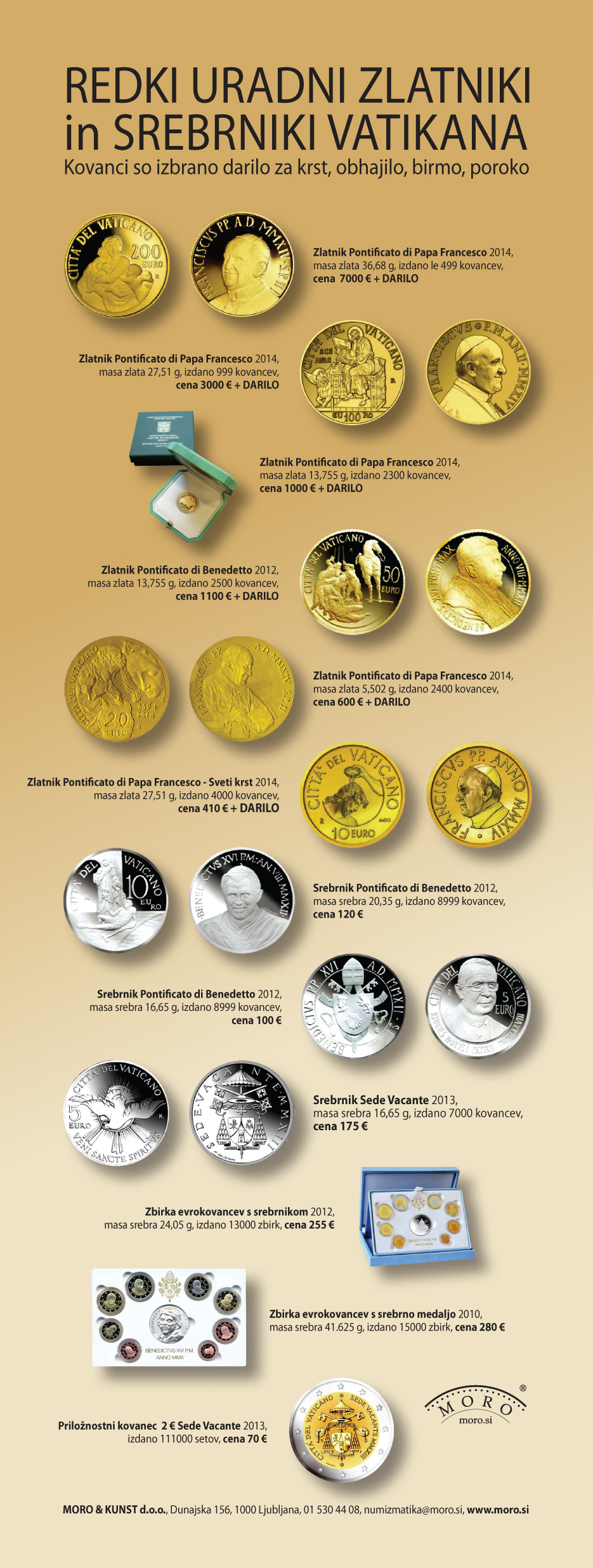 Objavljamo redke uradne zlatnike in srebrnike Vatikana, ki so izbrano darilo za krst, obhajilo, birmo ali poroko.