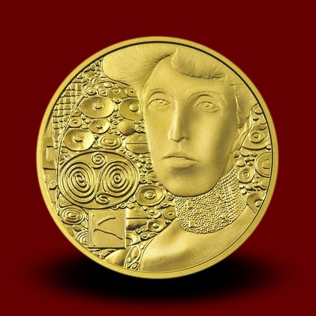 Na kovancu ima nazaj nagnjen obraz z rahlo razprtimi čutnimi ustnicami. Izraža veliko mero intenzivnosti in zapeljevanja. Ramena prekriva nežna svila, prsi ostajajo nezakrite. Njena odločnost se meša s ponosom, eleganca z vzvišenostjo. Sodobna frizura je poudarjena z motivom debla drevesa v ozadju. Klimt je mojstrsko izrazil in poveličal žensko lepoto. Na levi strani vidimo zlato spiralo, ki predstavlja širjenje zavesti in neskončnost življenja. Nad njo je vtisnjena črka I. Na drugi strani kovanca je v kvadratu podoba Nuda Veritas, kjer golo lepotico z dolgimi lasmi, na obeh straneh obdajajo spiralne oblike, kar daje poudarek njeni ženstvenosti. Ogledalo, ki ga drži v desni roki, simbolizira umetnikovo brezkompromisno nagnjenje k resnici v ustvarjanju. Za opazovalca pa je sodobno vabilo k »spoznaj samega sebe«. Ogledalo kot mesec odseva svetlobo sonca. Svetloba predstavlja zavest, modrost in duhovno poglabljanje. Odgovori, ki jih postavimo duši, se zrcalijo v odsevu zrcala. Ta je simbol vesti, ustvarjalne energije, lepote, globine srca in duhovnega odzivanja. Cvetovi na desni strani predstavljajo proces regeneracije. So simbol čistosti, ljubezni in harmonije, ki vladajo v neokrnjeni naravi.