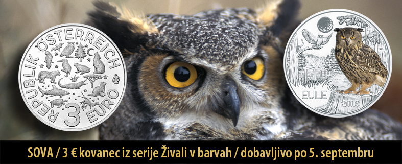 Osmi kovanec iz serije Živali v barvah bo izšel 5. septembra, tokrat s podobo nočne plenilke z veliko glavo in ploskim obrazom – sove.