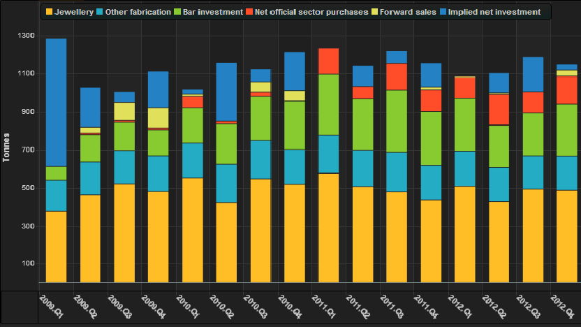 Količina medbančnih posojil se je v letošnjem letu nekoliko povečala, kljub temu je dokončno okrevanje evropskega gospodarstva še daleč. Evropska komisija je Franciji in Španiji podaljšala rok za zmanjšanje primanjkljaja pod 3 odstotke za dve leti, Belgiji in Nizozemski pa za eno leto. V ZDA lahko nadaljnje stimulativne ukrepe in nakupe obveznic pričakujemo še dokler ne bo dosežena vsaj 6,5 odstotna brezposelnost, 2 odstotna inflacija. Trenutno kazalniki ameriškega gospodarstva ne kažejo bistvenega izboljšanja, kar sicer predstavlja vzpodbudo rasti cene zlata in delno srebra, poroča GFMS.