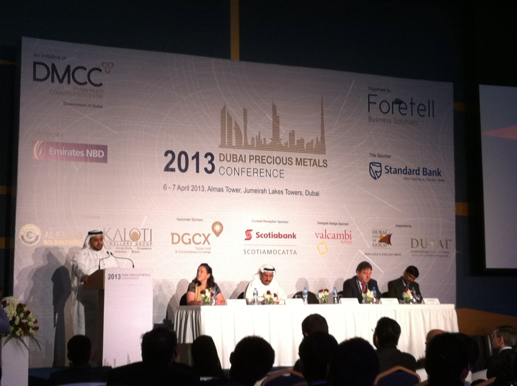 Začela se je mednarodna konferenca Dubai Precious Metals Conference, ki poteka v organizacji DMCC (Dubai Multi Commodities Centre) in Foretell. Uvodni nagovor sta imela posebna gosta, Ahmed Bin Sulayem, izvršni direktor DMCC in njegova ekscelenca, dr. Saeed M. Al Shamsi, minister za mednarodne odnose Združenih Arabskih Emiratov. Oba sta poudarila stateški položaj Dubaja pri trgovanju tako z investicijskim zlatom kot tudi nakitom, diamanti.