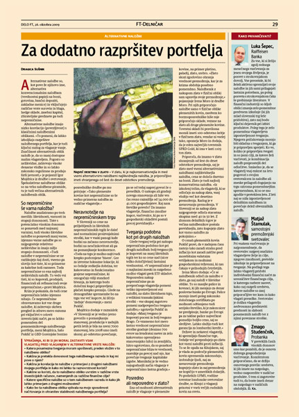 Za dodatno razpršitev portfelja; Vir: Delo FT