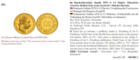 Zlatnik 6 ½ Dukat l.1878 – Schemnitz Gulden, dosežena cena 440.000 €