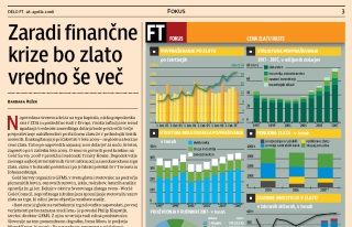 Zaradi finančne krize bo zlato vredno še več (Delo FT, 28. april 2008) – avtorica Barbara Režek