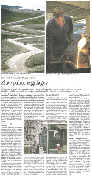 Zanimiv članek o zlati mrzlici na ruskem Daljnem vzhodu z naslovom Zlate palice iz gulagov objavljen v Delu (Panorama) objavljamo v celoti.