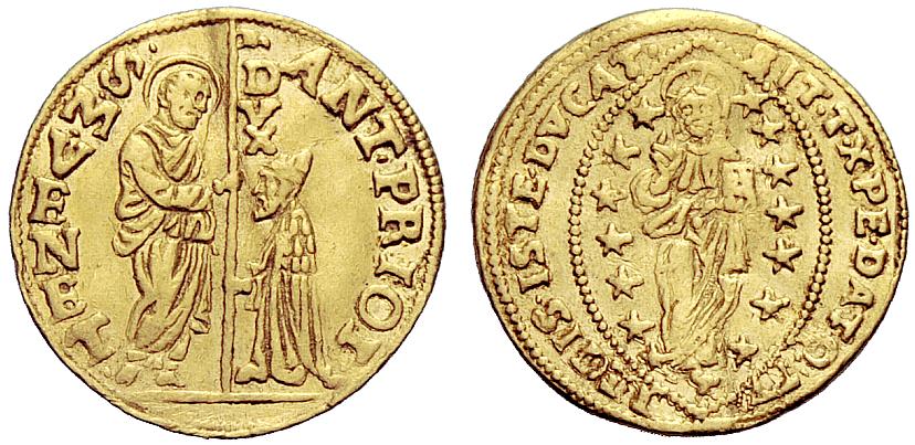 Dotok zlata, postopna obnova rudnikov in večanje obsega trgovine je vzrok, da so leta 1252 pričeli kovati v Firencah zlate florinte. Nekaj kasneje, leta 1284, prično z isto maso in čistino (3,494g in Au999/1000) svoje cekine (zechino, od zecca=kovnica) kovati tudi v Benetkah. Izraz dukat izhaja iz zadnje besede legende na hrbtni strani kovanca, Sit tibi Christe datus quem tu regis iste ducatus. Beneški dukat je skozi vse svoje obdobje, od začetka do konca kovanja leta 1805, obdržal svoje lastnosti, maso, čistino in tip.